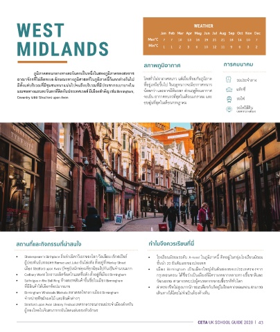 • Shakespeare’s Birthplace ถิ่นก�าเนิดกวีเอกของโลก วิลเลียม เช็กสเปียร์ • โรงเรียนมัธยมระดับ A-level ในภูมิภาคนี้ ติดอยู่ในกลุ่มโรงเรียนมัธยม