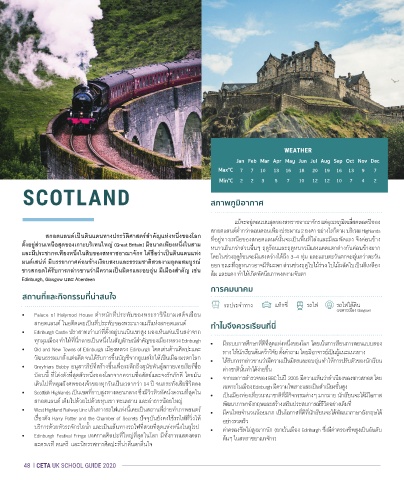 ทุกมุมเมือง ท�าให้ที่นี่กลายเป็นหนึ่งในสัญลักษณ์ส�าคัญของเมืองหลวง Edinburgh • มีระบบการศึกษาที่ดีที่สุดแห่งหนึ่งของโลก โดยเน้นการเรียนการสอนแบบสอง